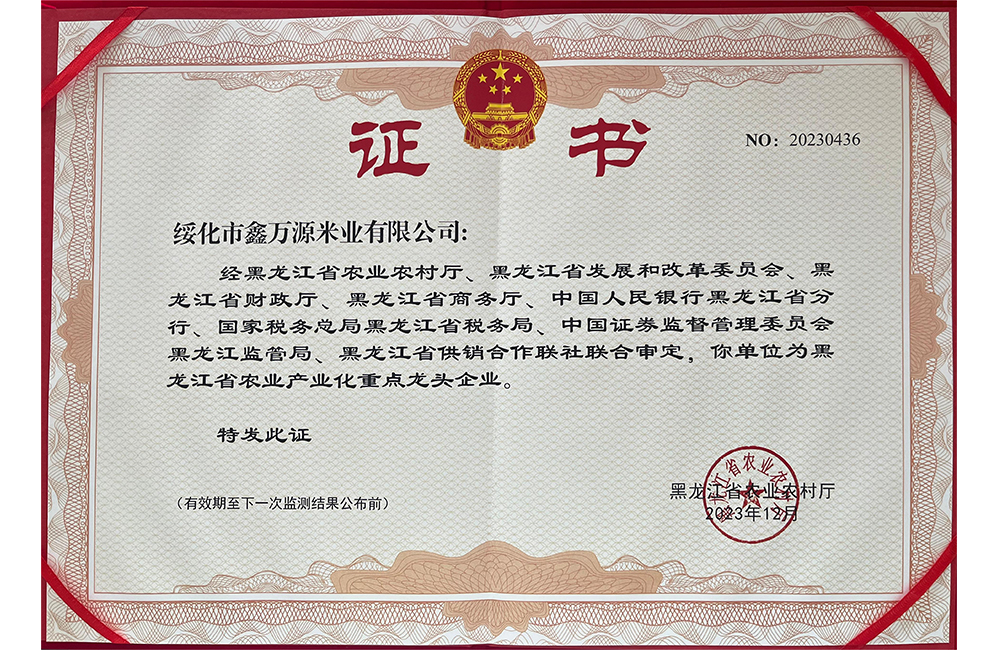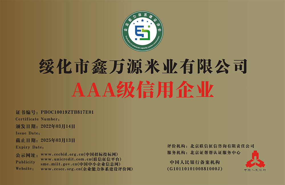 走進我們 ABOUT US 您現(xiàn)在的位置:網(wǎng)站首頁 > 走進我們 > 資質(zhì)榮譽 公司簡介 COMPANY PROFILE 領(lǐng)導(dǎo)致辭 CORPORATE CULTURE 資質(zhì)榮譽 HONORS 企業(yè)文化 HONORS 黑龍江省級重點龍頭企業(yè) 黑龍江省級重點龍頭企業(yè) 專精特新中小企業(yè)證書 食品安全、質(zhì)量管理體系認證證書 AAA級信用企業(yè):鑫萬源米業(yè) AAA級企業(yè)信用等級證書 共35條記錄 當前為第6頁/共6頁上一頁1234...6下一頁